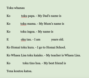 The learners in the class learned to write about their family in Te Reo Maori and in English using the template below. The learners enjoyed typing the Toku whanau in both languages, add page colour, take a screenshot and upload it to their individual blogs. I am so proud of the learners in Room 21.